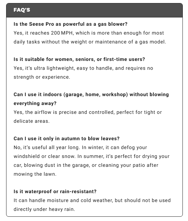 That’s the beauty of it. Seese Pro™ was built to replace bulk without losing performance . For most daily cleaning jobs, you’ll never touch your big, heavy blower again. And your back will thank you.
